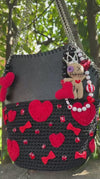 Borsa realizzata artigianalmente con paglia di alta qualità, decorata con pompon morbidi, perle in resina, conchiglie naturali e cristalli scintillanti, accompagnati da inserti in pizzo all’uncinetto fatti a mano. Leggera e spaziosa, misura 50 × 30 cm, ideale per un look estivo fresco e naturale.