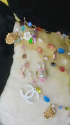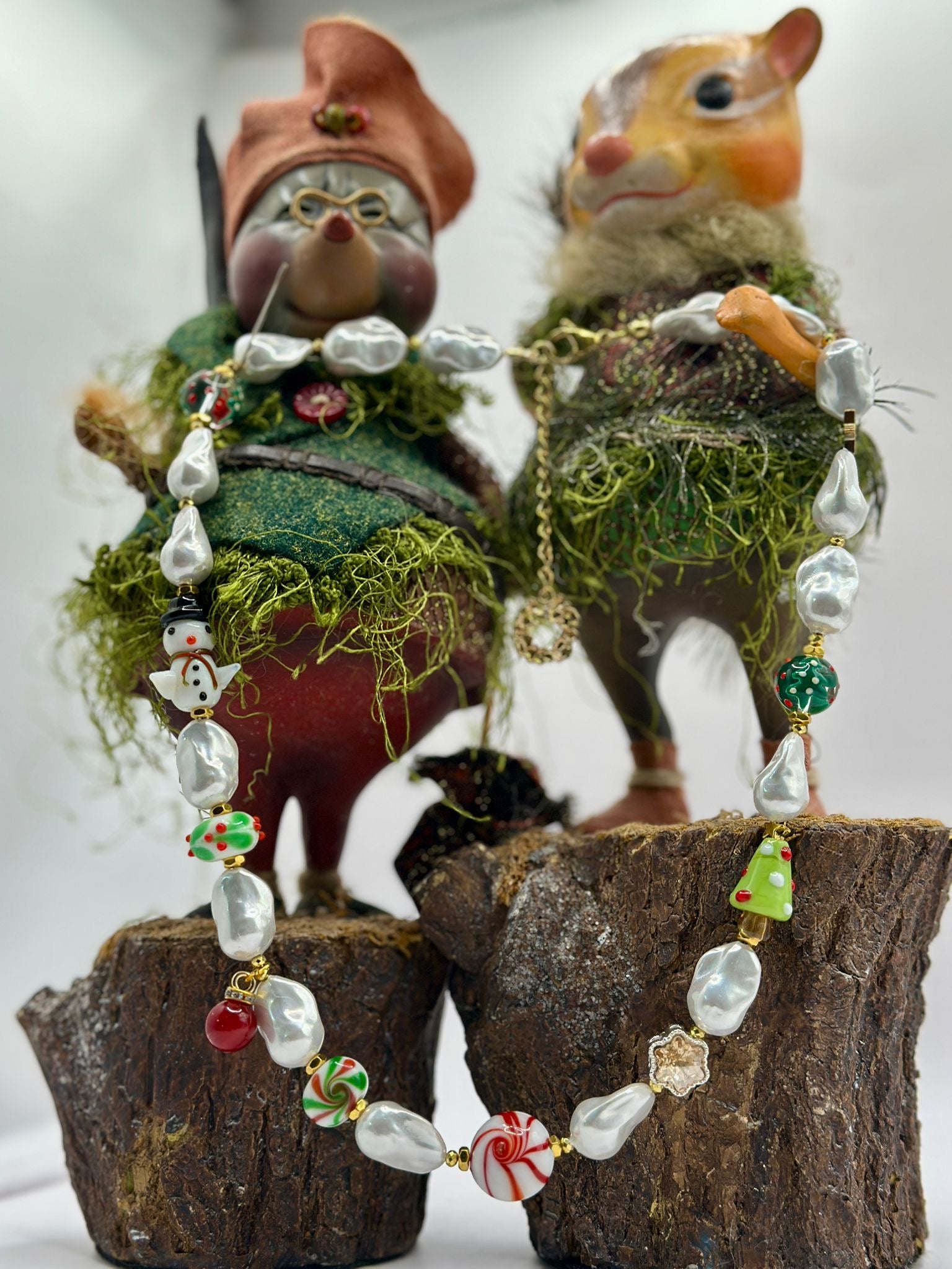 Perle naturali di fiume alternati da personaggi in vetro soffiato cristalli lunghezza 50cm con catenella regolatrice