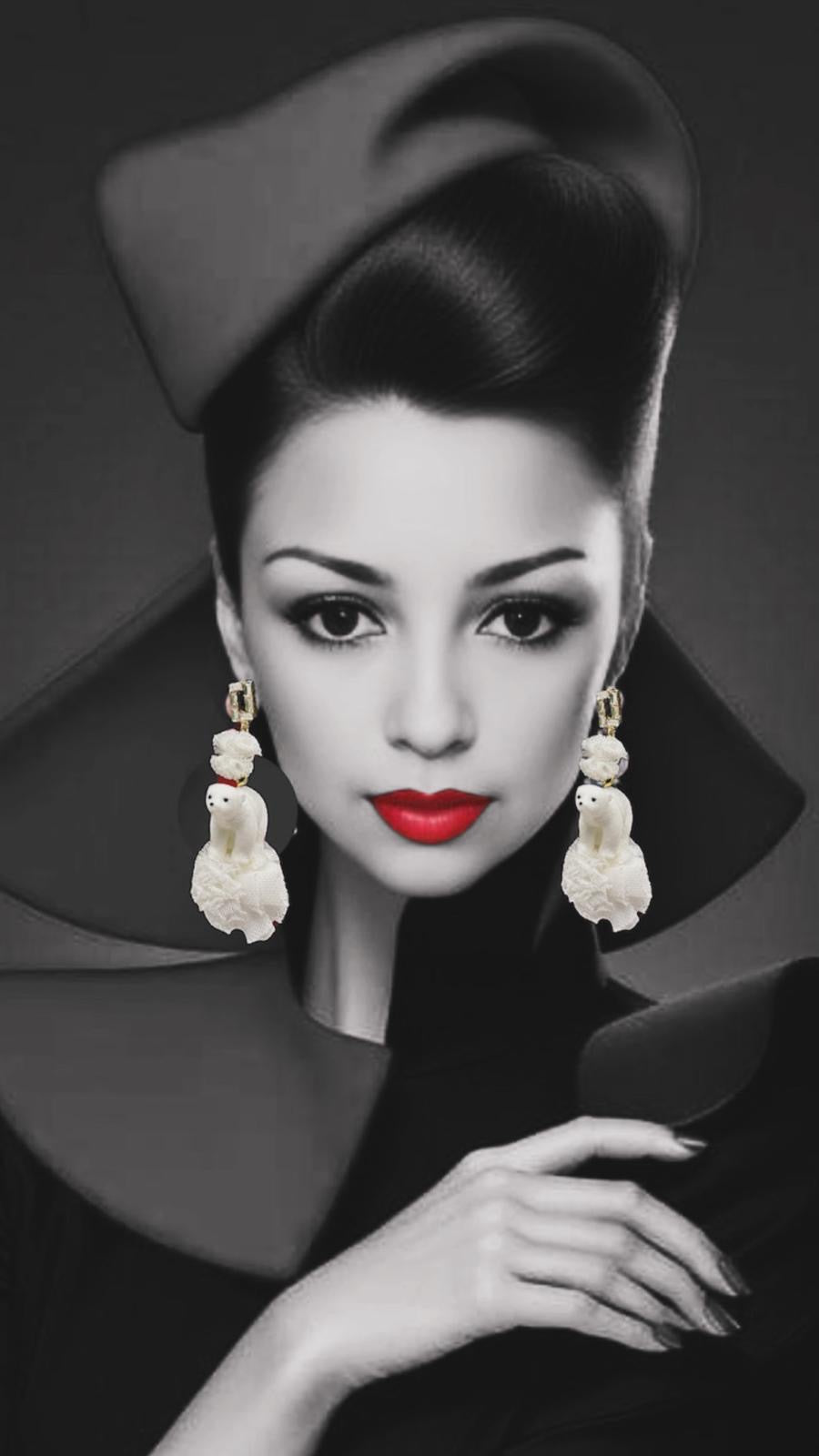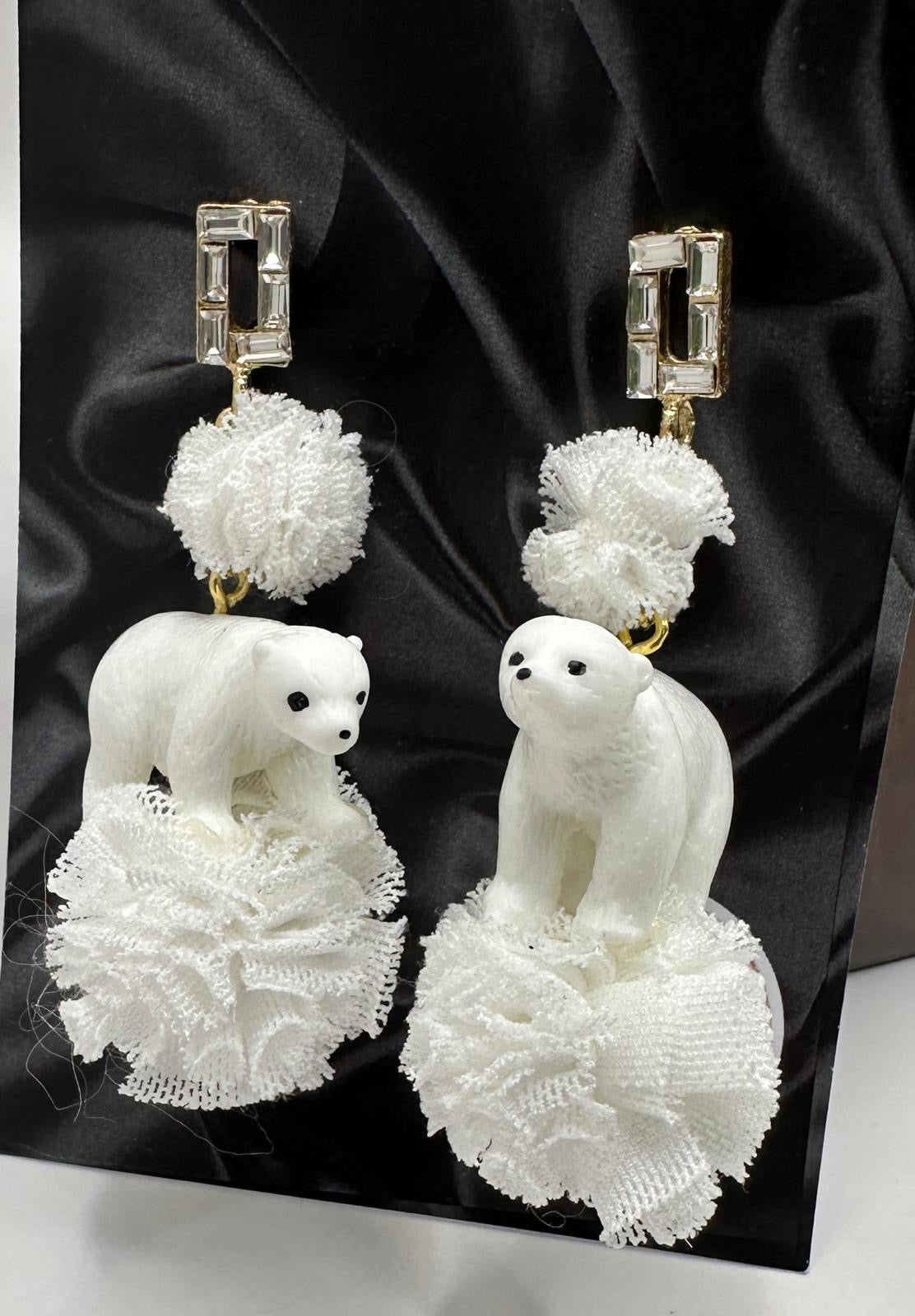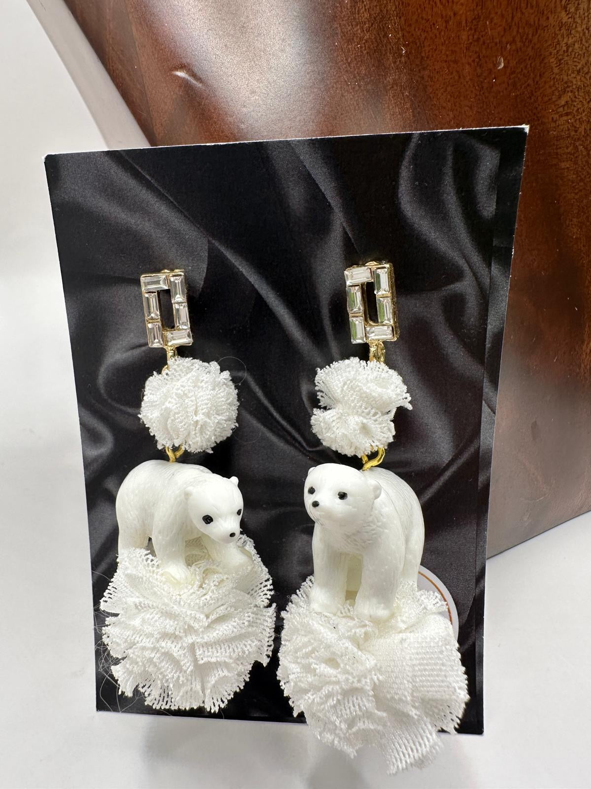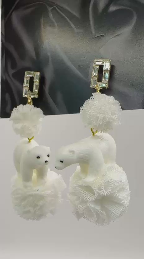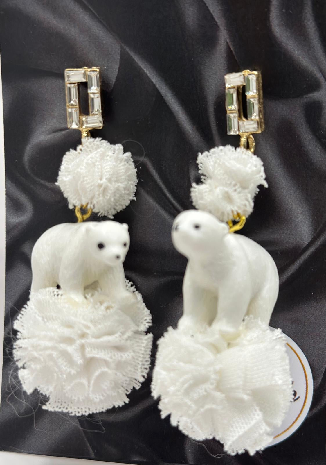 Orecchini orsi glaciali personaggio in resina pom pom in pizzo lunghezza 6cm